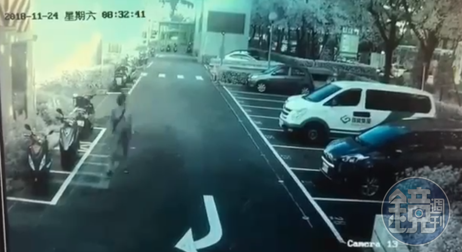 監視器畫面顯示,上午8點多一名男子三步併兩步離開的停車場,並不斷回頭看有沒有人跟著,此名男子並非偷了東西而是持刀砍了人,犯案過後立刻騎乘機車逃逸,被害人遭到砍傷後立刻趕緊求救。