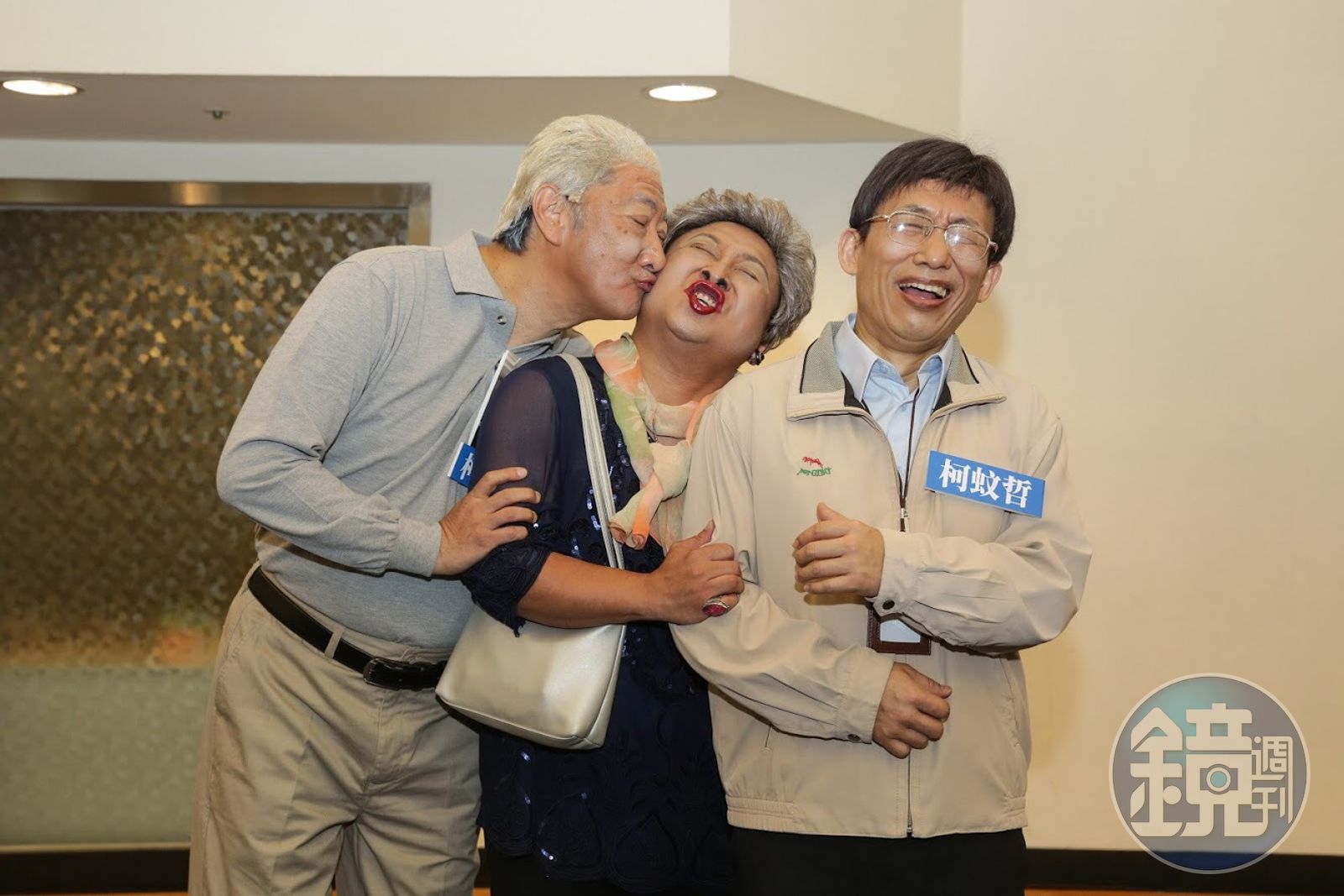 郭子乾被大夥譽為「橡皮人」,幾乎什麼角色都能模仿,尤其候選人幾乎都被模仿過一輪。提起模仿市長柯文哲的要領,郭笑說:「柯P就是眼睛看著鏡頭,想自己的事情就對了。眼睛很空洞,也沒有放空喔,我都知道你在講什麼!」而納豆因為戲劇系學長謝念祖的推薦而加入,一進去王偉忠的辦公室,王劈頭就說:「你是不是侏儒啊!」納豆那時覺得自己是劇場⼈沒什麼好怕的,就亂說:「我是全家最⾼的。」進入《悶鍋》初期,納豆有一次模仿白冰冰因為尺度沒有拿捏好,被邰智源痛罵:「你等一下安靜不要給我出聲!」納豆卻還是硬著頭皮,眉飛色舞演下去,讓前輩們都忍不住說:「這小子很OK,毫無羞恥心。」對納豆來說,《悶鍋》是真正培養新人的地方。昨納豆扮成柯媽模樣可愛,演柯爸的九孔在一旁一直摸來摸去,彷彿真的老夫老妻,郭子乾看在眼裡直嚷著「驚嚇過度」,十分爆笑。