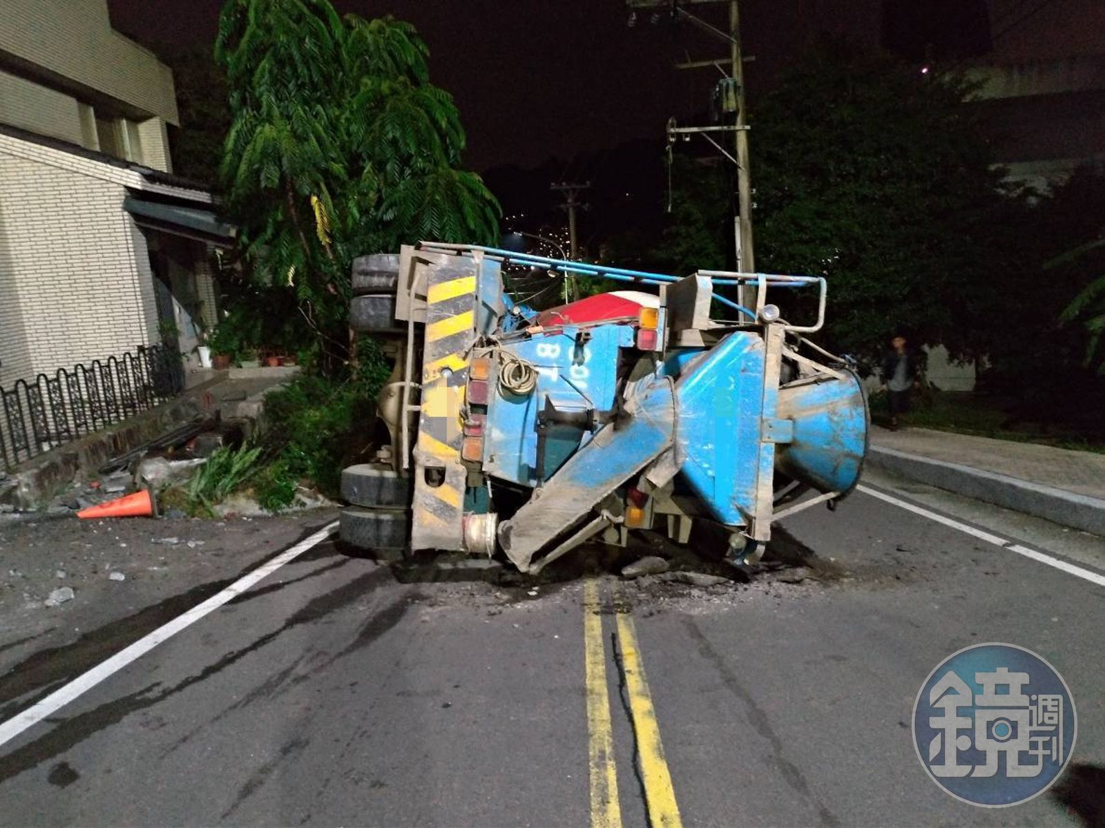 失控水泥車如移動凶器 失控撞重機騎士幸運僅擦傷