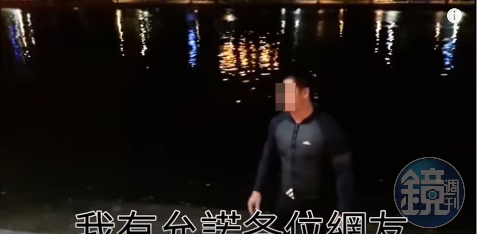 網友爆料,涉及詐騙欠款、騷擾他人的那姓男子,又拍攝跳愛河影片,引來網友撻伐。(翻攝Youtube)發布時間:2018.11.28 11:44 臺北時間