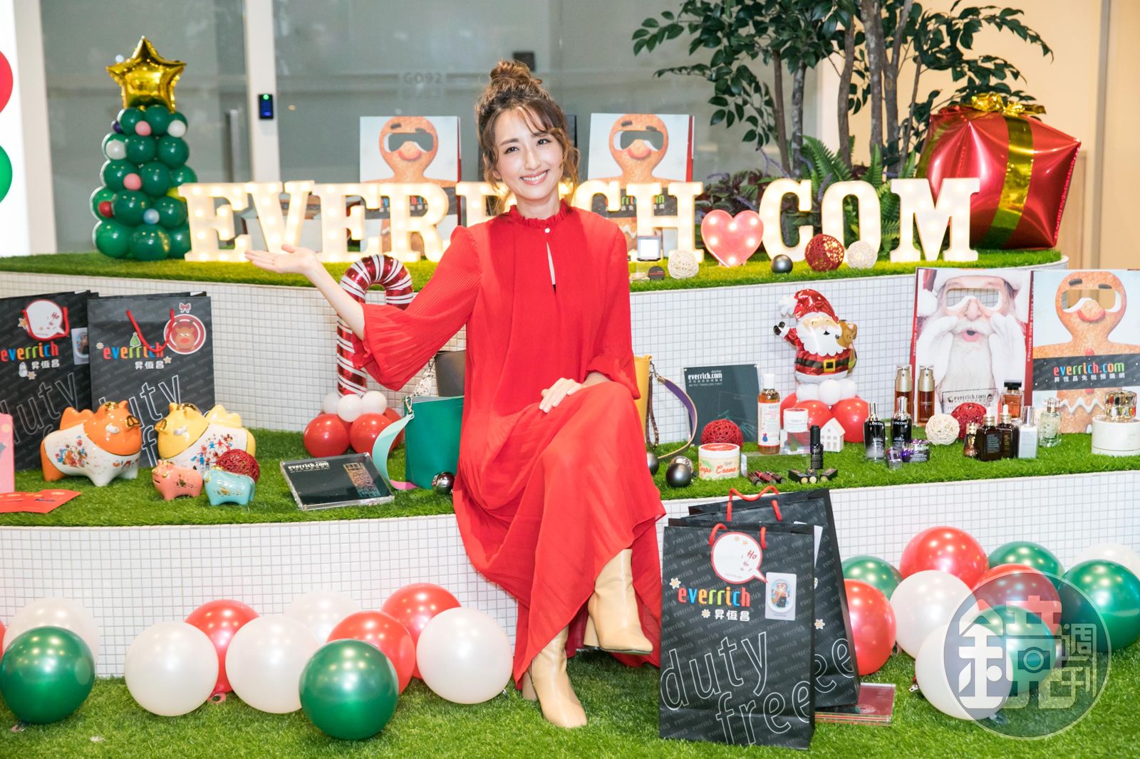 柯佳嬿表示自己是很理性的消費者。(昇恆昌免稅預購網提供)柯佳嬿活動上分享聖誕購物清單,預計送老公3C產品、送公婆手表和保養品。