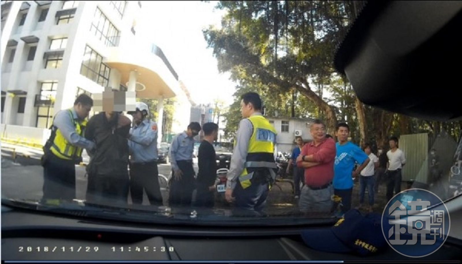 為此,警方將范男的影像通報學校注意,所以當他犯案時,派出所員警並不訝異。今天中午,范男又跑進校內,似乎想再跟蹤下課的陳女,當他鬼鬼祟祟的窺視時,一名教師察覺有異,詢問:「你不是本校師生,到我們學校裡面幹什麼?」范男一開始支支吾吾,顯得心虛,突然惱羞成怒持預藏的美工刀揮舞,作勢威嚇老師,駐衛警連忙通報派出所,員警迅速抵達將他制伏。