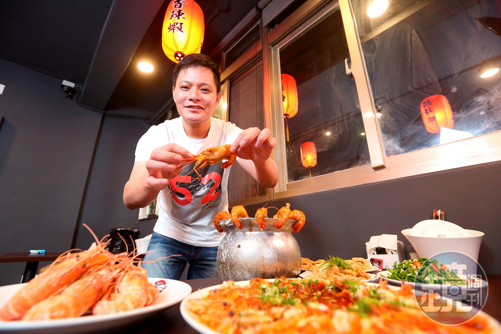 活蝦面前,哥的霸氣盡失,狼狽擠掉髒血,咬牙繼續。偏偏一旁的師傅還不停碎念他手腳太慢,「我剪刀拿了就要插他,他跑給我追。凶過之後對我超好。」提到這段蕭文明自己都覺得好笑,特別澄清他不是天生脾氣壞、不好惹,只是那口氣有點難吞,「他都臭幹喇譙啊!我憋了一個禮拜欸。」
