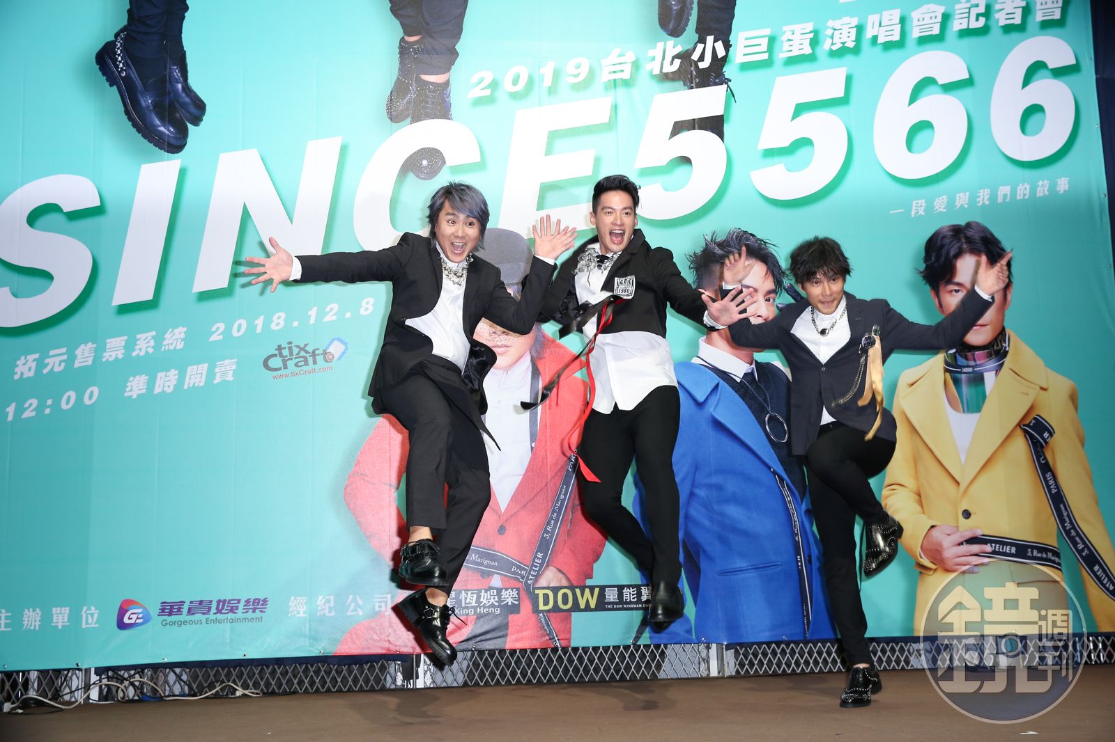 5566辦演唱會記者會,端出當年偶像必作的飛躍姿勢入鏡重現風采。發布時間:2018.11.30 17:48 臺北時間