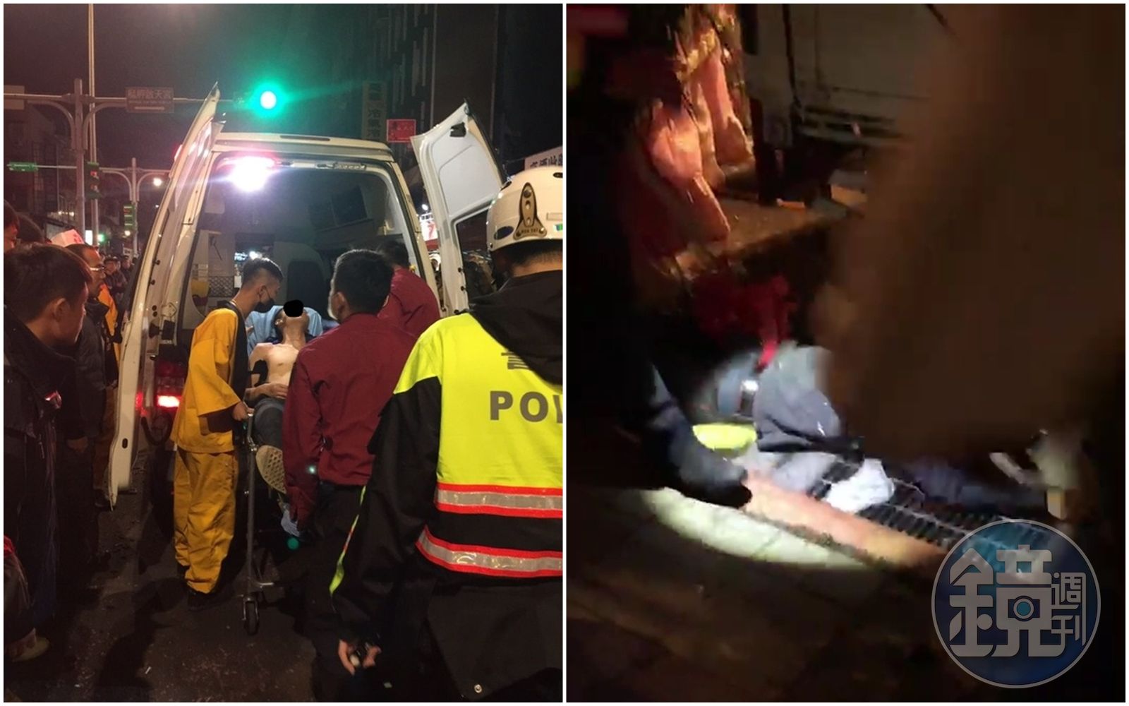 魏姓男子(右)遭人開槍,大腿血流不止,另2人則分受程度不同的刀傷、撕裂傷,3人均緊急送醫。(翻攝畫面)發布時間:2018.11.30 10:17 臺北時間