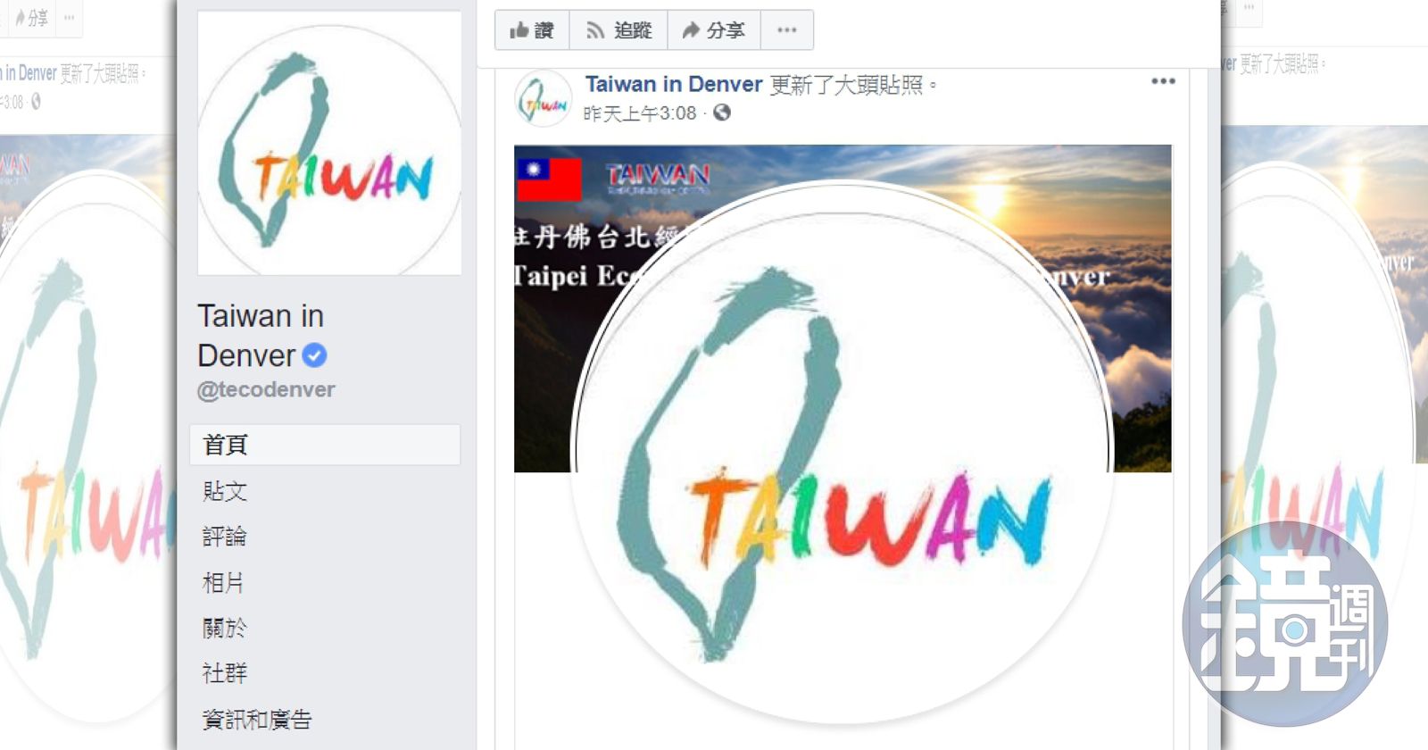 外交部國際傳播司司長陳銘政表示,外交部於11月時去函給有設立臉書專頁的駐外館處,建議外館可使用統一圖像和名稱,這張寫著TAIWAN字樣的圖像也是由外交部提供,希望藉此凸顯台灣能見度。