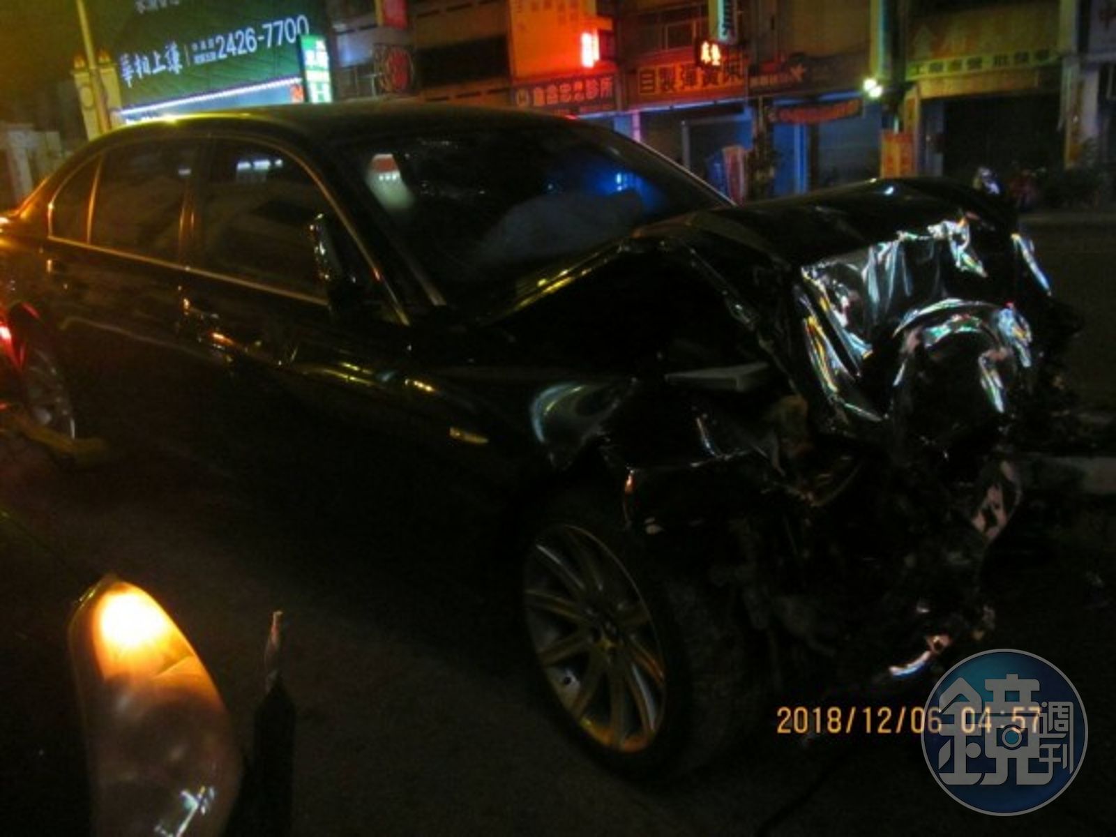 目擊者指出,當時葉男駕駛「BMW大七」,行經北區中清路和北平路口,在他前方、由外國籍男子「布拉德」(音譯)所駕駛福特租賃車,正要往北平路方向轉彎,兩車不知何故高速相撞,因衝擊力道頗大,「大七」撞了福特之後,整個失控再往外衝,波及路旁好幾部汽機車,就連矗立在人行道的公車站牌,也硬生生被他攔腰撞斷、倒塌,可見衝擊力道之大,而車內的葉男與2名乘客,因安全氣囊爆開,毫髮無傷,可是他的「大七」,車頭幾乎全毀,損失慘重。