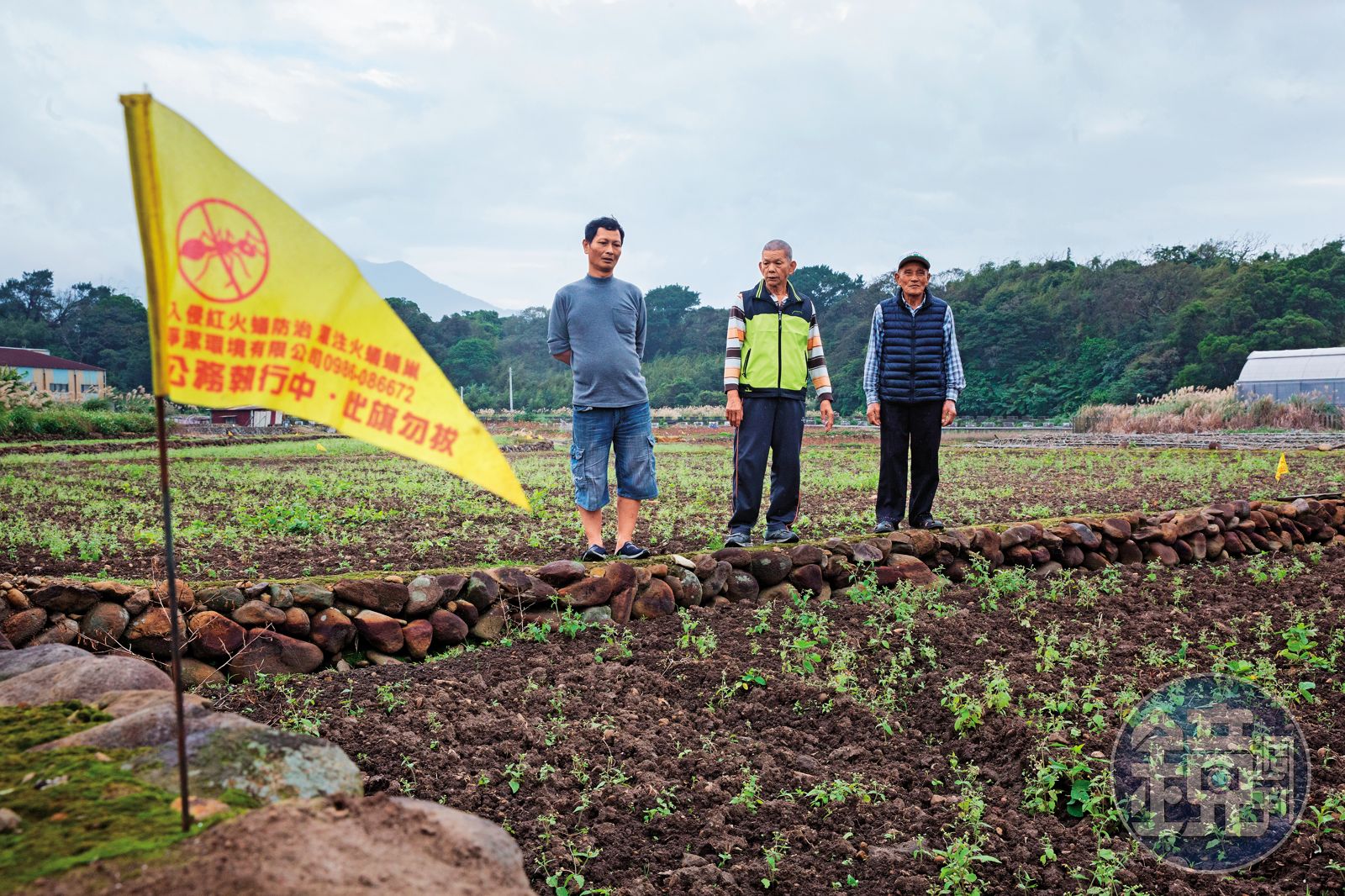 12月5日下午,本刊記者造訪淡水屯山里,適逢休耕季節,農田裡看不見稻穗搖曳,倒是遠遠的就能看見旗海飄搖,每塊農田都插著幾十支黃色小旗,乍看像是慶典或遊戲,但每1支旗子都代表著超毒紅火蟻窩,屯山里更有近百居民遭到攻擊,民眾每天都生活在螞蟻的惡夢中。