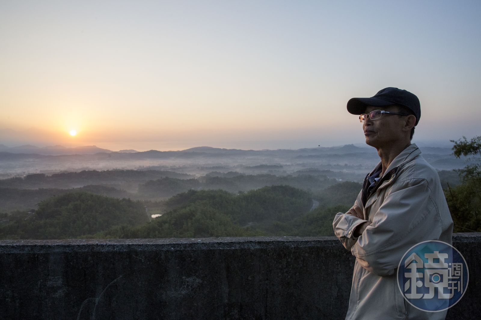 這是陳永和最愛唱的歌,每每唱到「沒有天哪有地,沒有地哪有家」,他就忍不住鼻酸。看著遠方日出,他顯得感慨:「是不是?沒有地哪有家?我每次回來這裡就會想到這首歌,如果沒有這塊土地,哪裡有我們陳家?我以前就常回來,回來到後來,才會選里長,跟你拚了。這麼好的一塊地方要破壞,你是想留什麼給子孫?我絕對要把這裡顧好,任何人都不能來給我糟蹋。」