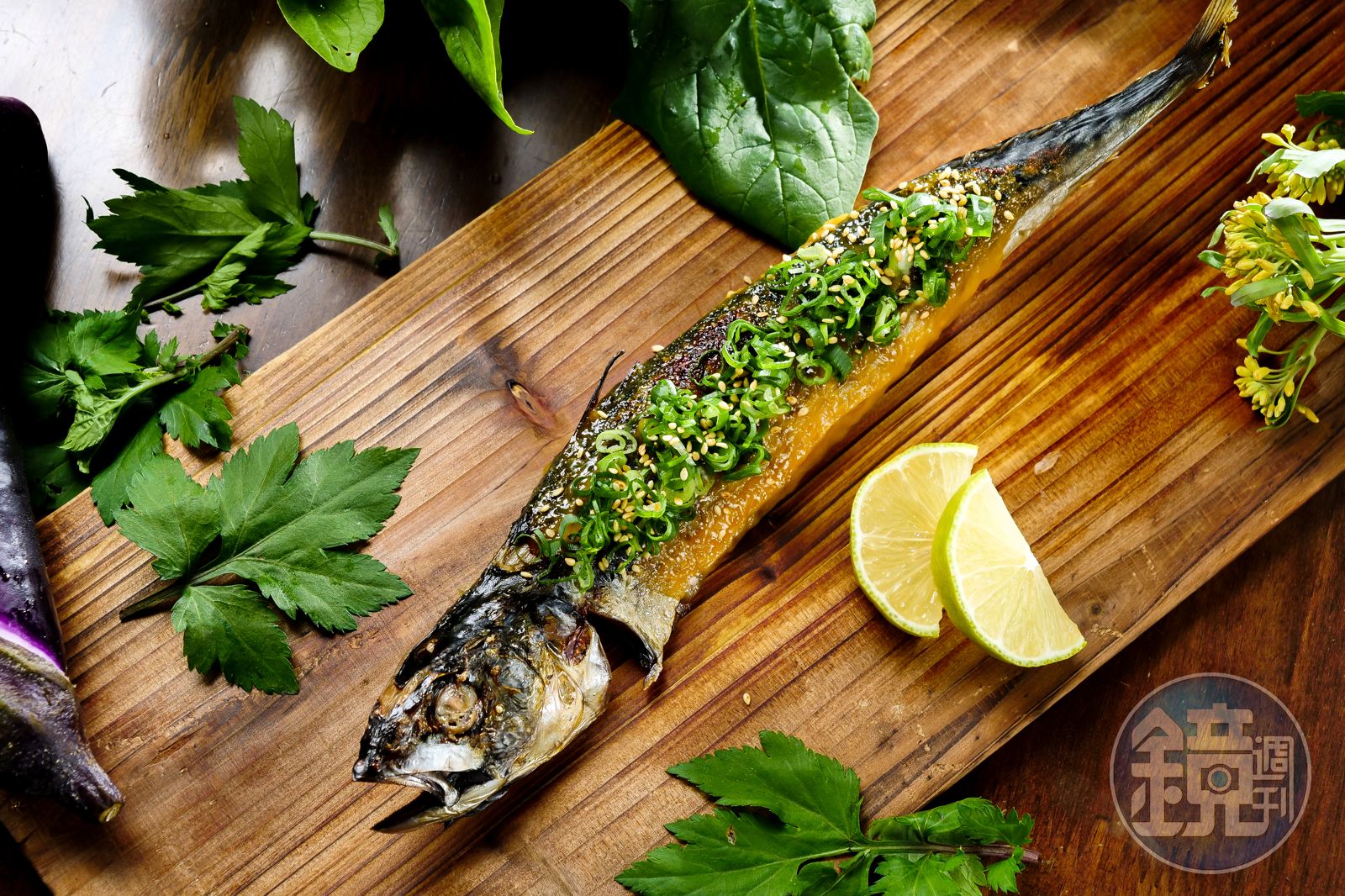 由於鯖魚有較重魚味,「頑味食堂」的老闆兼主廚陳昭璋,特調一款紅酒味噌醬,在魚炙烤到8分熟時刷上一層醬汁,除了利用紅酒的單寧幫助魚肉熟成 ,也為其賦味,既能嘗到鯖魚的鮮嫩,又多了味噌的鹹甜,十分下酒。