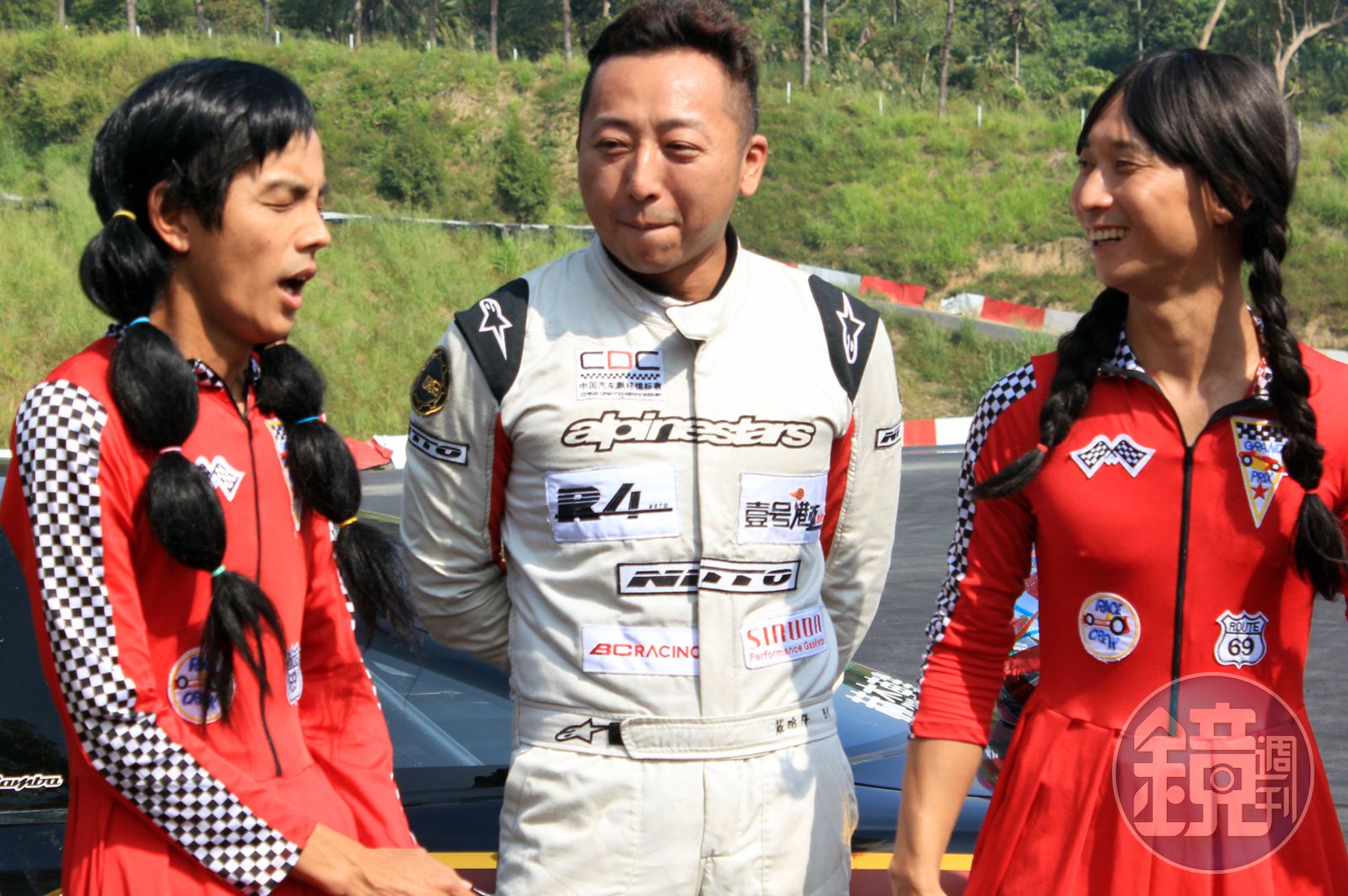 浩角翔起扮女裝挑戰賽車,模樣令人噴飯。(民視提供)發布時間:2018.12.13 15:41 臺北時間