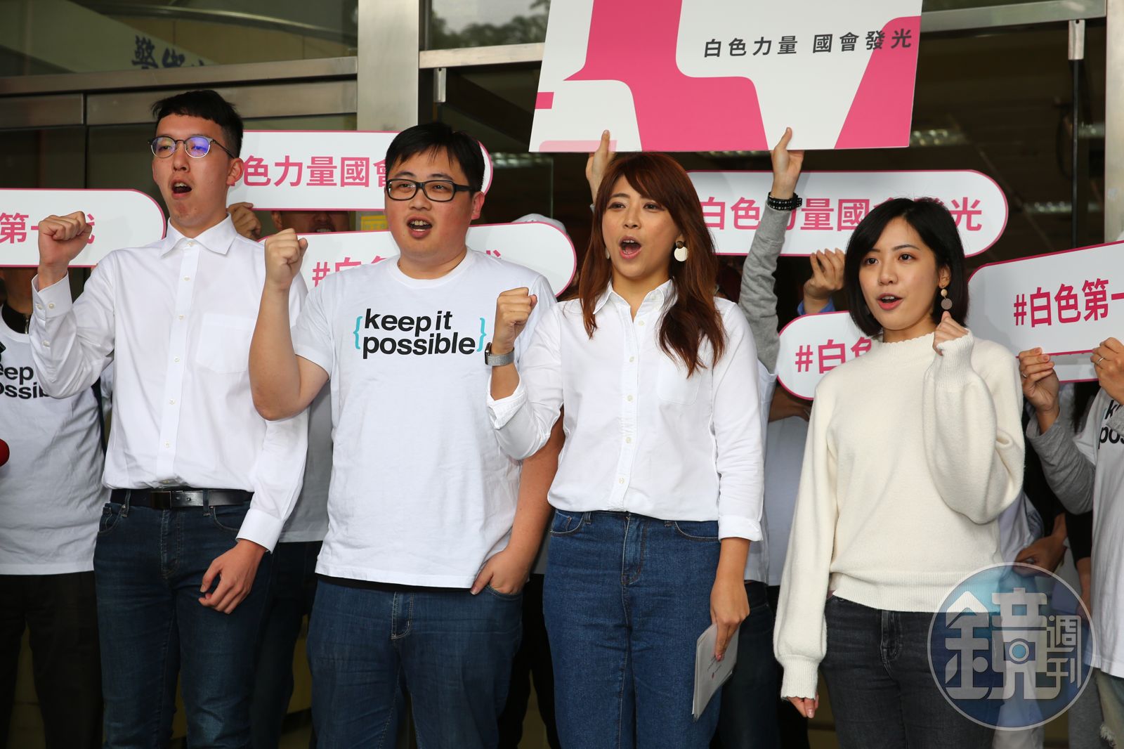 陳思宇的臉書粉絲頁名稱,昨天已從「思宇的日常」改為「陳思宇 白色力量 國會發光」。她今天在「學姊」黃瀞瑩、「大熊」劉奕霆、「小牛」柯昱安等市府幕僚陪同下登記參選,並表示,選在今天登記,除要隆重且正式宣達白色力量想要改變政治文化的決心,也將以更大的誠意告訴民眾,「我們能為他們做什麼」,希望民眾在藍綠之外,有更好的選擇。