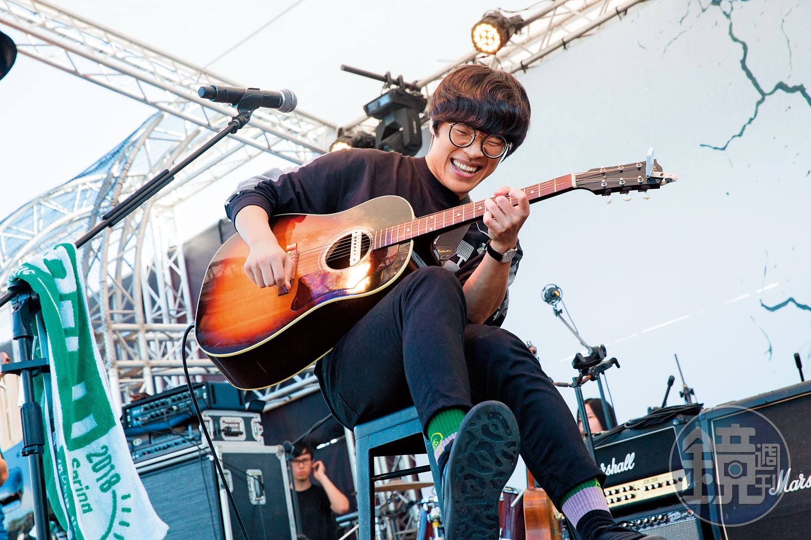 音樂成了唯一出口。他彈吉他、唱歌、創作,車禍隔年,他參加淡江大學金韶獎,竟拿到創作、獨唱2項冠軍,再參加政大金旋獎,又是創作組冠軍。他也認識了現在的老闆、唱片製作人鍾成虎,開啟音樂生涯,他總是頂著那呆瓜頭、大眼鏡、短褲白襪球鞋,搭配不時的咧嘴傻笑,形象逗趣。