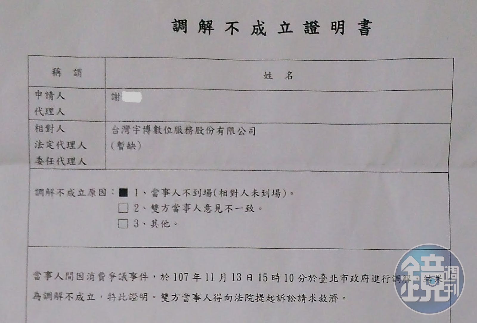 民眾不滿意Uber作法,向台北市法制局申訴,但調解不成立。(讀者提供)發布時間:2018.12.14 10:03 臺北時間