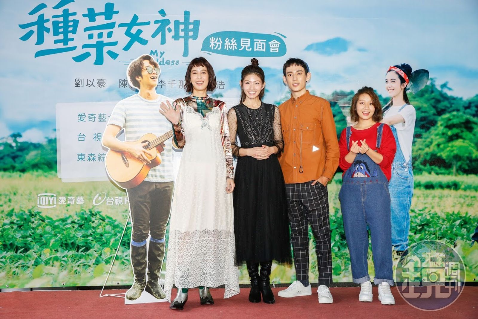 歐銻銻娛樂自製劇《種菜女神》今(16日)舉辦粉絲見面會,陳庭妮、李千那、徐鈞浩、安乙蕎跟粉絲提前慶祝耶誕,由於男主角劉以豪因工作無法出席,改以真人一比一看板代替參與,陳庭妮今天也一直黏著看板,又抱又靠,見板如見人,逗樂全場。