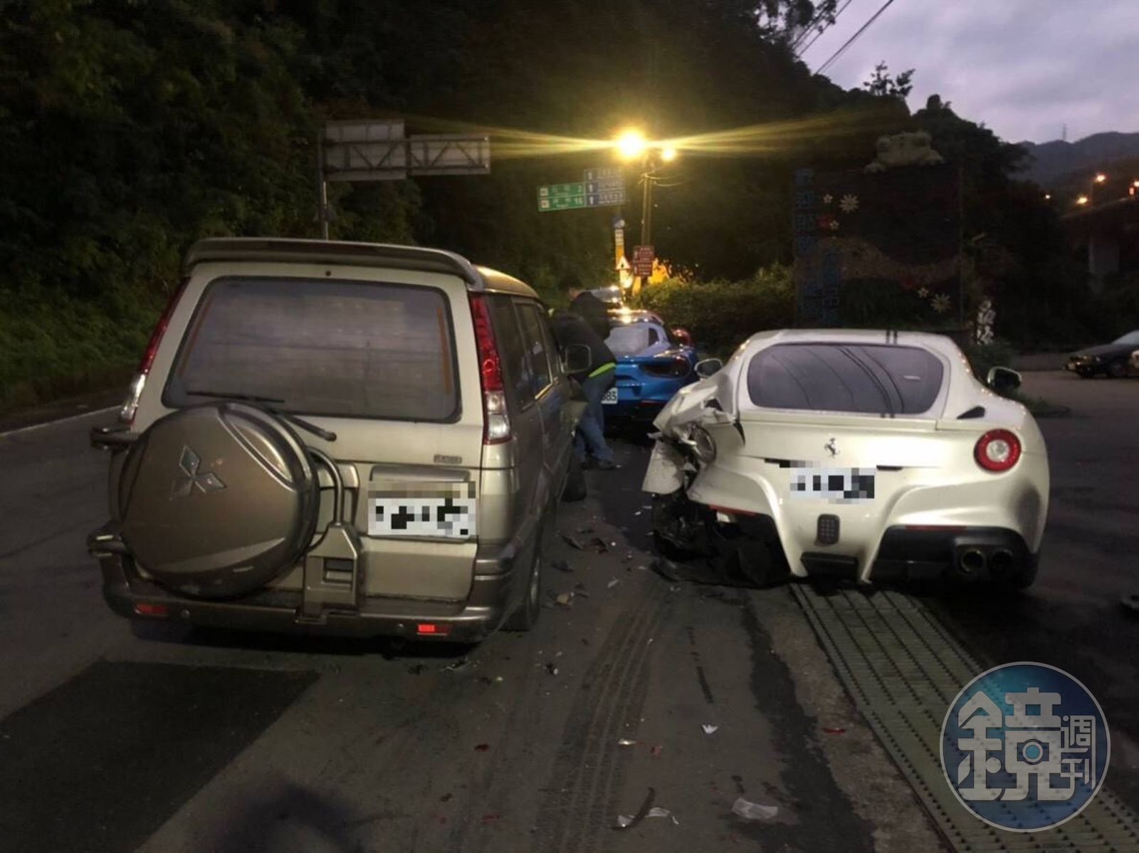 現場依序為紅、藍、白、黃4台法拉利,據車主表示,4人相約在出事地點集合,要從北宜公路前往宜蘭,卻遭林男追撞,由於4台車是前後停放,黃車遭撞後便往前衝擊,4輛車皆有損傷。