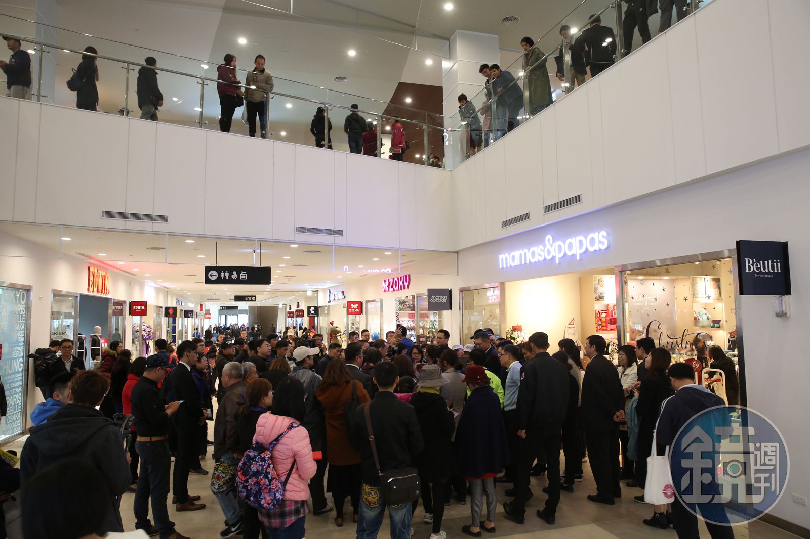 開幕當天政商雲集,包括三井不動產社長菰田正信、台中市長林佳龍、立法院副院長蔡其昌、大甲鎮瀾宮董事長顏清標,到場的媒體擠爆活動現場,就連旅日球星陽岱鋼都來站台。當天吸引超過3萬人進場消費,光買杯咖啡都得排隊至少半小時,館內處處擠得水洩不通,熱鬧的景象在當地大概只有媽祖遶境才看得到。