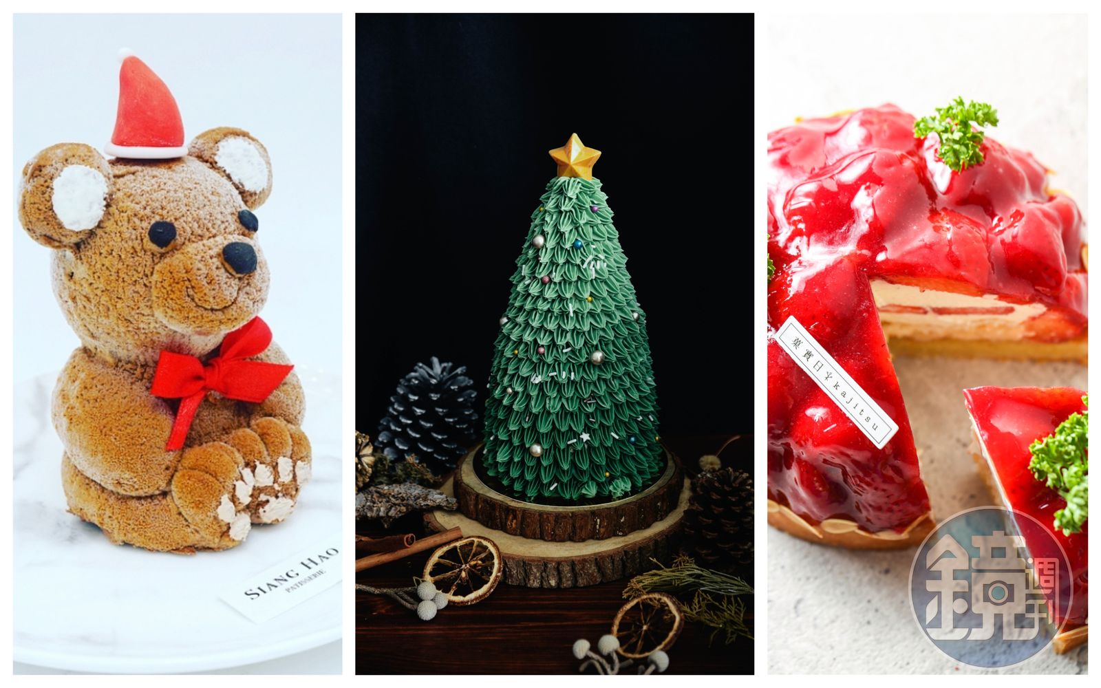 幾個月不見台中甜點店「Siang Hao Patisserie法式甜點」店主羅暐翔,技術大躍進,為了耶誕節,他特別開模製作「小熊」,頭戴翻糖耶誕帽的小熊一出場,填進巧克力慕斯、榛果核桃、伯爵慕斯和覆盆子果凍的毛茸茸身體,就讓人驚呼:「太Q!怎麼捨得下刀!」羅暐翔聽了,忍不住提示:「大家有發現,我的小熊脖子特別粗嗎?因為脖子裡都有填餡,很實在,拜託一定要切開吃!」