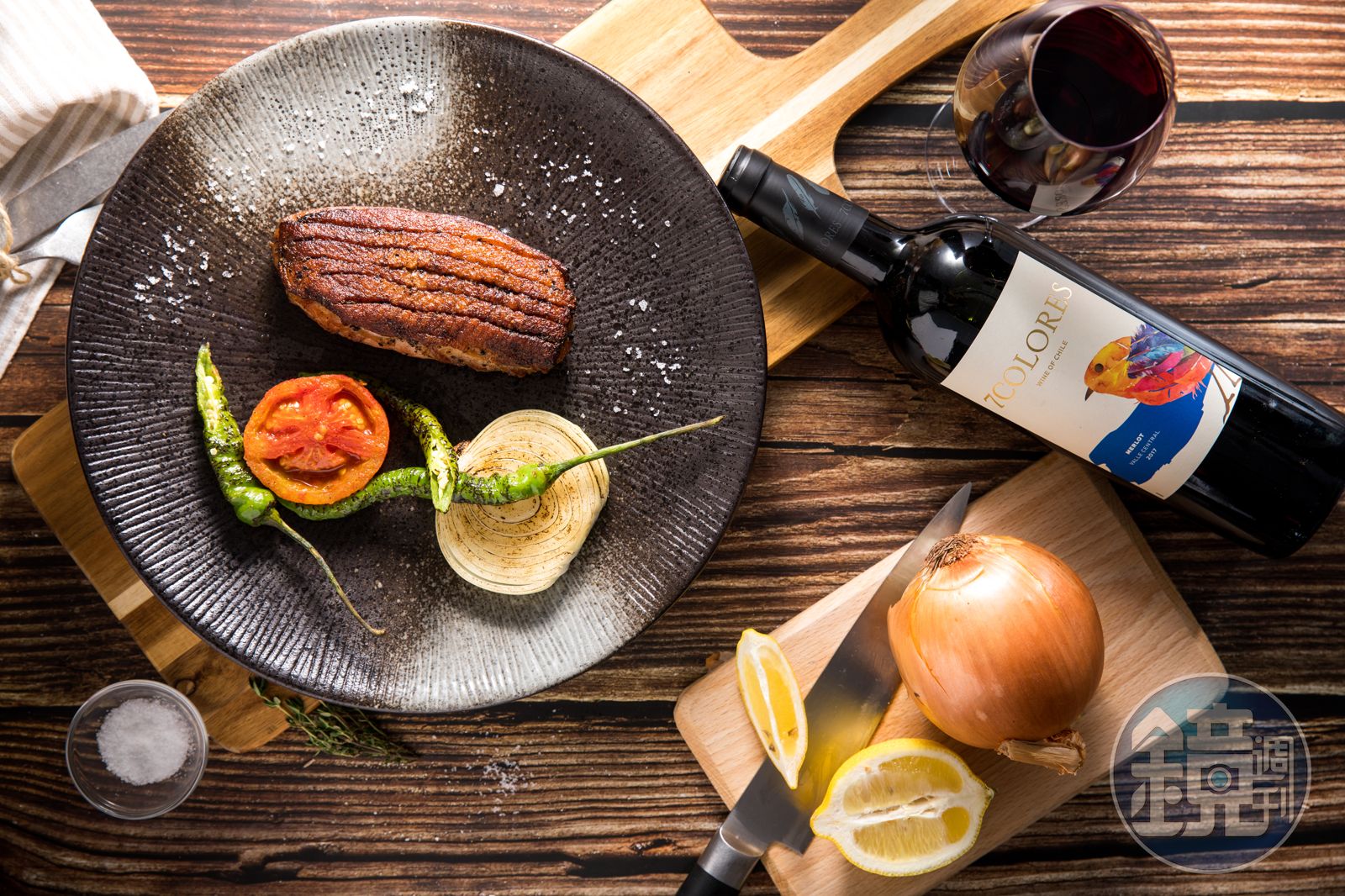 當酒液撞進杯子的瞬間,我就嗅到滿溢的香氣,入口氣味豐富、奔放。「享‧香檳海鮮餐酒館」的老闆陳冠銘建議,可搭配野味十足的「主廚招牌黑胡椒脆皮鴨胸」一起享用,料理作法是將鴨胸先煎到5分熟,再抹上厚厚一層黑胡椒,炙烤到皮脆後再刮除,不僅有脆皮叉燒般的鹹脆口感,胡椒香氣還能與葡萄酒尾韻的辛香料味相襯。