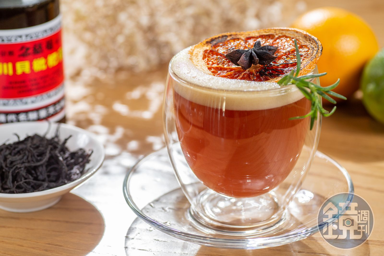 調酒名取得極有意思,好比喝起來爽快的Mai Tai Twist,就叫「邁太爽喉飲」,「慈方飛炫」「孝廉勤費事」是Old Fashioned、Fizz的變化款,而枇杷膏怎麼用於古典調酒裡呢?Charles解釋:「枇杷膏在酒譜裡的作用,相當於糖漿或苦精,以枇杷膏取代兩者,用此邏輯抽換,再微調口感,把糖加回來,可以圓潤枇杷膏的味道。」