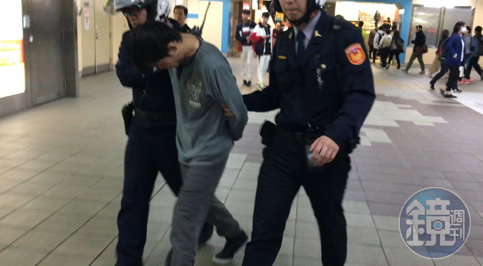 王男在捷運車廂內燒烤牛排刀,引起民眾驚慌,遭警方逮捕。(警方提供)發布時間:2018.12.19 21:03 臺北時間