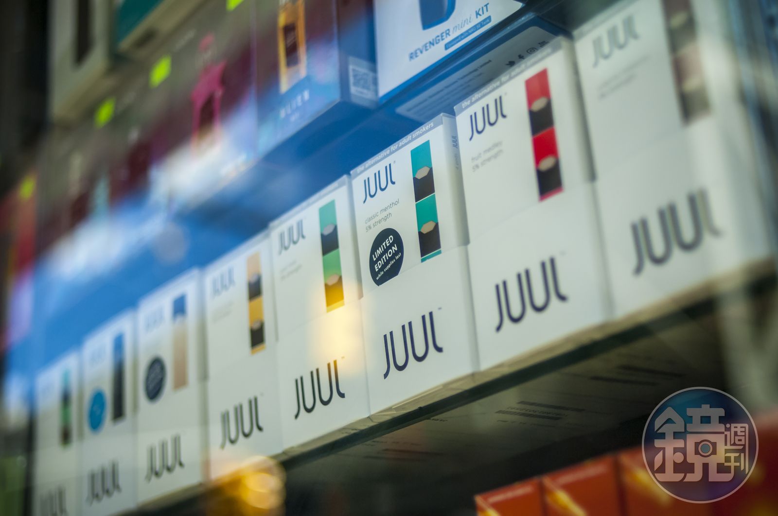 Juul總部位於舊金山的一間新創公司,2015年推出號稱「電子菸界的iPhone」,擁有高達7成的市占率。根據美國媒體《Vox》報導,Juul是一款精簡、不用電池、煙霧不大的電子煙,沒有複雜的煙油回填方式,繽紛的色彩看起來就像是科技產品,這也是年輕人早已熟悉的事物。然而大部分的人卻不知道裡面有尼古丁,而每一個Juul煙彈中尼古丁含量是歐盟標準的3倍,這也是為什麼Juul無法在歐盟販售的原因。