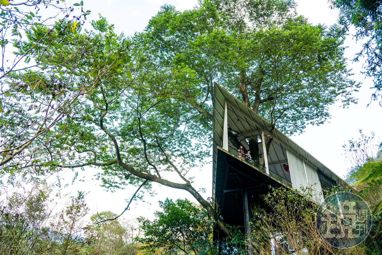 除了餐點外,九樹森林最大特色就是造型獨特的民宿,由於老闆是設計師,將自然元素融入建築當中,更加入舊鐵皮、舊窗櫺等,頽廢之感放在樹林間完全無違和感,因而也成為網路上相當熱門的打卡景點。