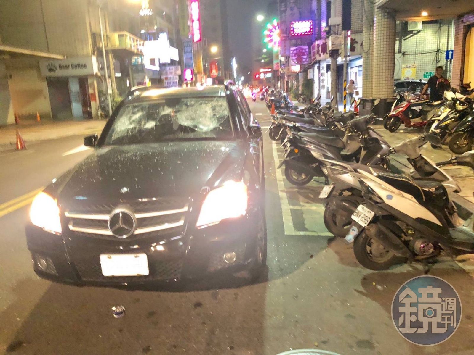 今(22)日中山區錦州街一輛百萬賓士車遭惡煞砸毀。(警方提供)發布時間:2018.12.22 14:36 臺北時間