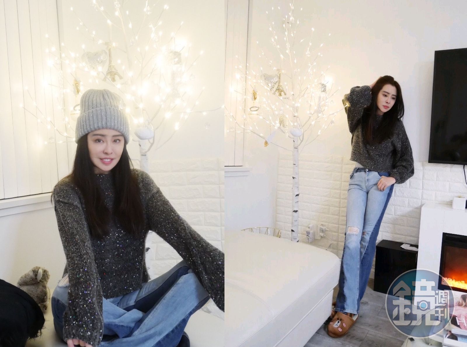 另張照片則見到戴著灰色毛帽的王祖賢盤腿坐在白色沙發上,對著鏡頭淺笑,51歲的她,竟還流露出幾分少女味道。雖然她的衣著寬鬆,但絲毫不見臃腫,包括手臂、大腿等的線條都十分正常,下巴也是尖的。其實10月王祖賢就曾曝光2次近照,一次在月中,另一次則是月底,當時的臉龐都還有點福態,這次看來已完全回復女神體型。