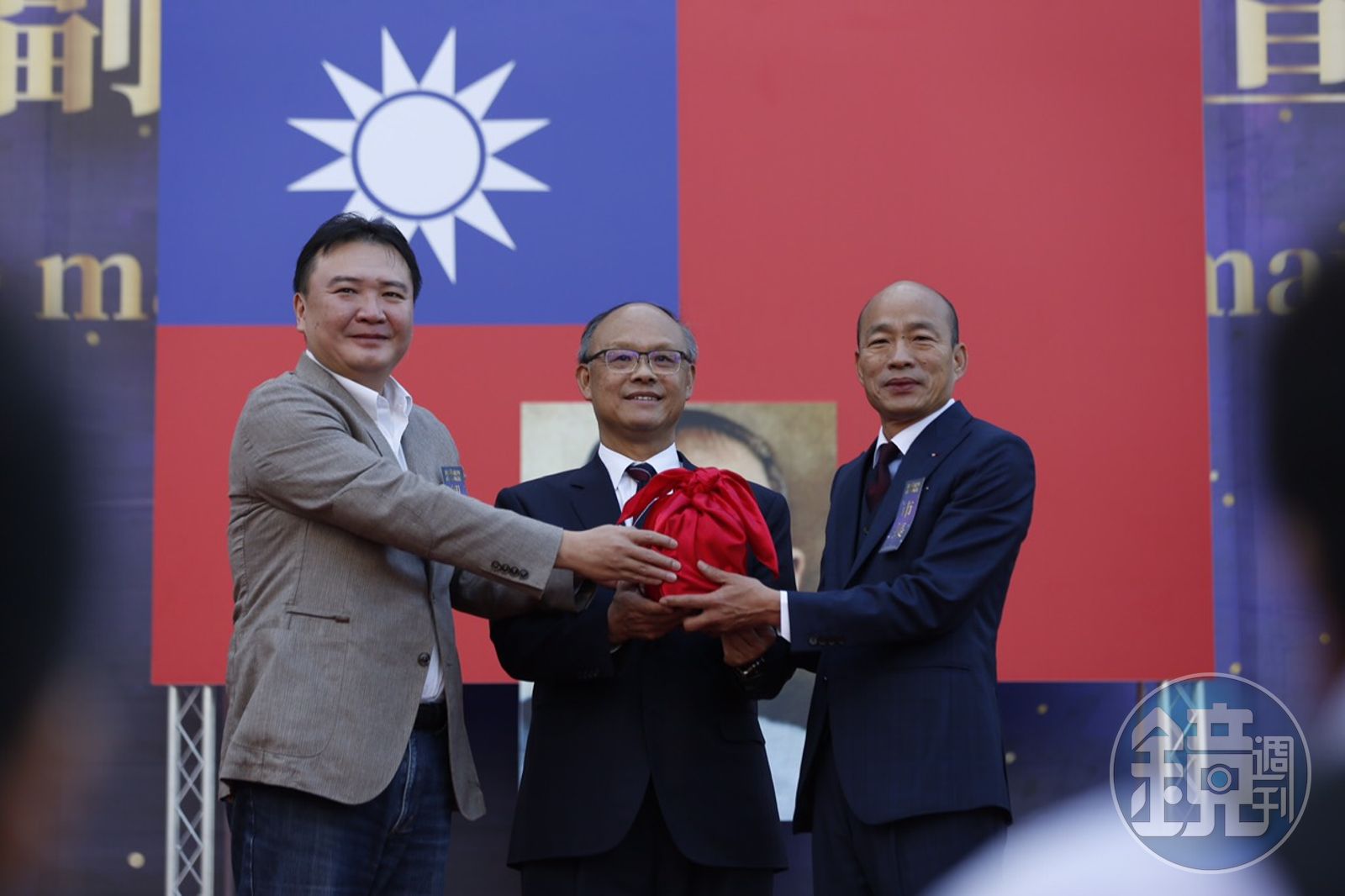 25號一大早,從8時30分開場,韓國瑜穿著量身打造的紳士風禮服亮相,偕同夫人李佳芬從棧貳庫搭乘八號愛之船,進入愛河抵達高雄地標鰲躍龍翔主會場,隨後宣誓就職並交接印信,所有市府小內閣各局處首長包括3位副市長逐一唱名宣誓就職。