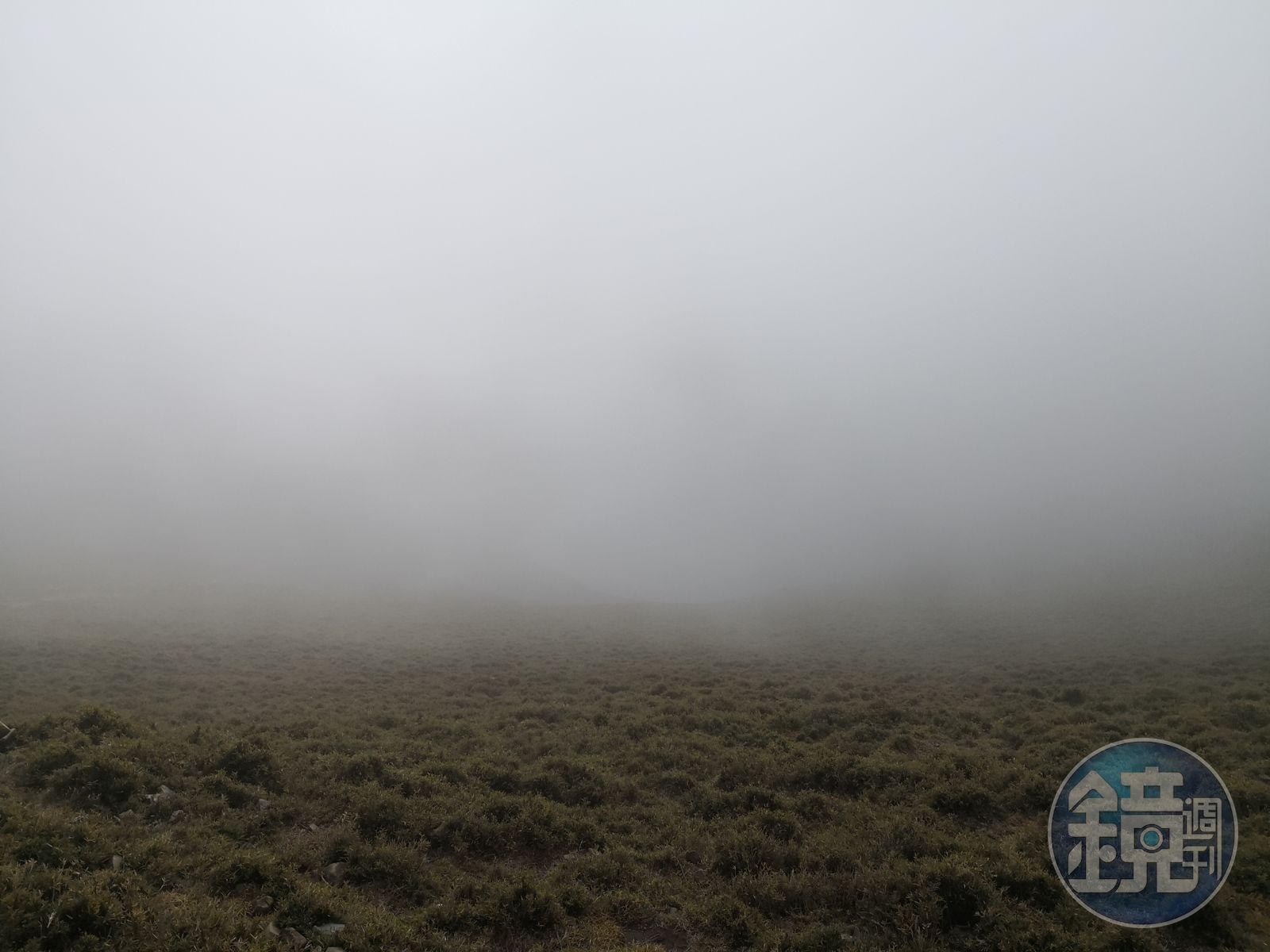 撤退畢竟不是件頂愉快的經驗,回程再度經過嘉明湖時,本來也是大霧濃得看不見湖,但就在那個瞬間,濃霧隨著風勢開始迅速移動,嘉明湖漸漸有了輪廓,霧時有時無慢慢散去,最後整個湖面竟然出現淺藍色,這實在比我上次看到萬里無雲的藍色眼淚更令人震撼。
