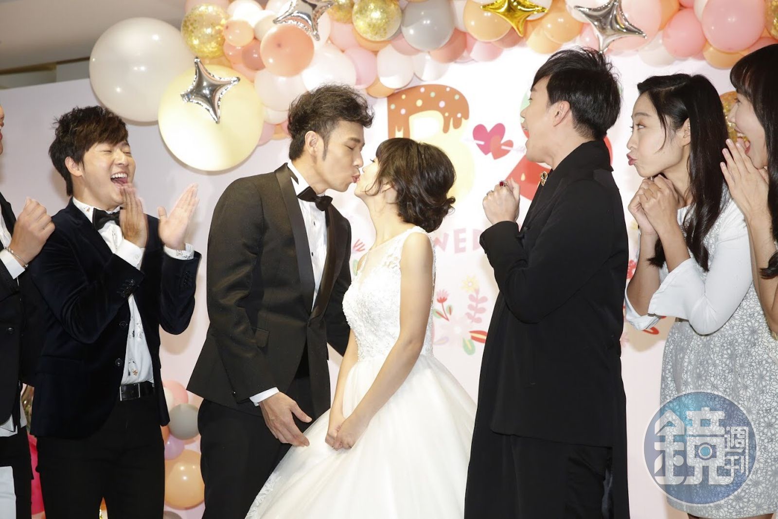 和香蕉哥哥是18年的同事,西瓜哥哥李岳開心表示「YOYO家族第一對,是非常大的喜事」,感情很好,但也稍微抱怨竟然跟大家一樣都是看新聞才知他們在一起,看到新聞整個傻掉。米可白獨自來喜宴,開玩笑說不找老公一起來可以少佔一個位子,她說:「等下看他們手牽手,我可能就會哭吧!太感動了!好期待他們生寶寶。」雖然早已經沒有再當姐姐,但現場還是有很多媽媽帶著小朋友要找這位「前葡萄姐姐」拍照。