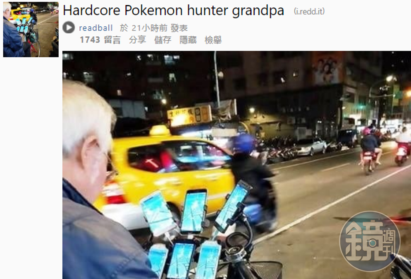 而如今又有一位騎鐵馬用「6機」抓寶的阿公登上美國最大論壇,但抓寶之餘,還是要注意交通安全,才能平安抓寶。