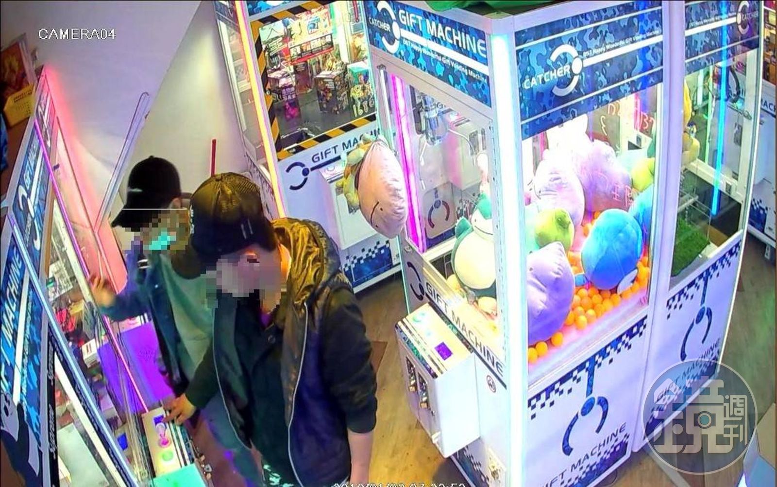 因聽聞娃娃機內的藍芽喇叭商品可以換現金,竊賊(右)偷取鑰匙後再次重返現場偷商品。(警方提供)發布時間:2019.01.10 11:39 臺北時間