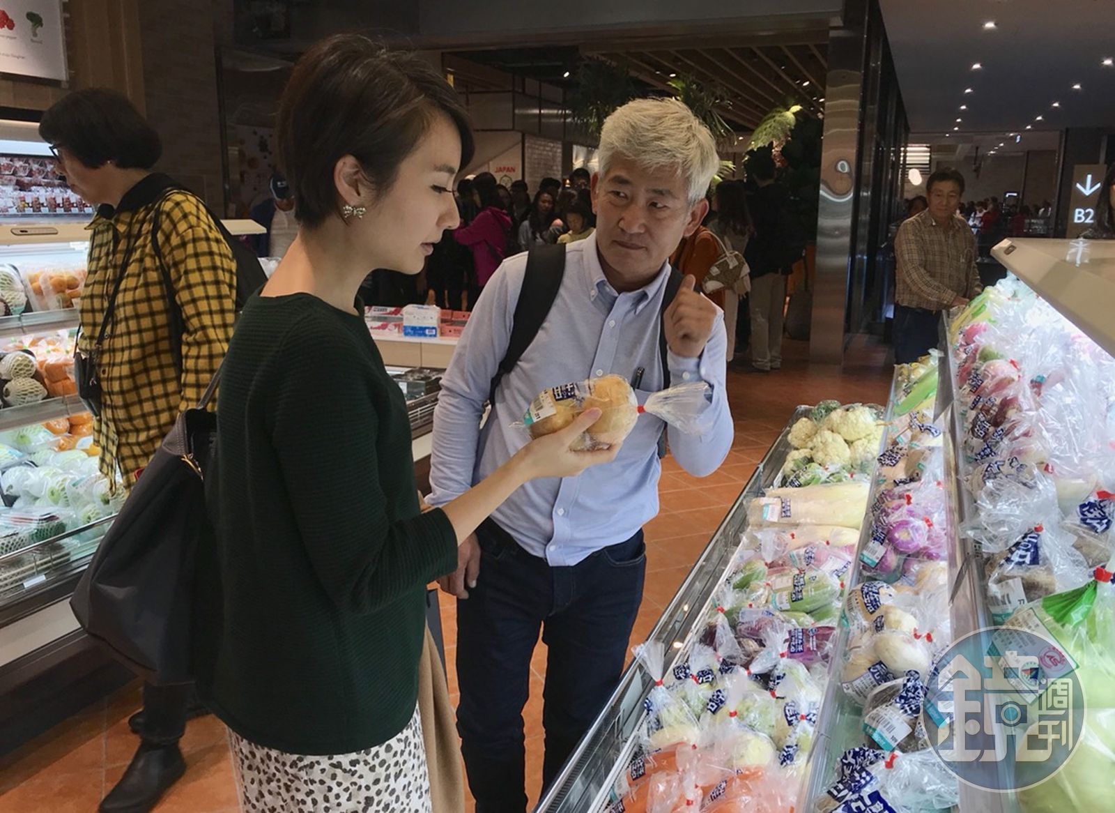 被許多米其林餐廳大廚搶用的台南「元氣家農場」蔬菜鮮翠上架,羽衣甘藍、彩色蘿蔔、日本水菜,超過30種的食用香草、花卉等蔬菜,滋味飽滿。現場還遇到親自北上來上架蔬菜的元氣家老闆林中智,Liz說:「我有買你的菜,超好吃的。」