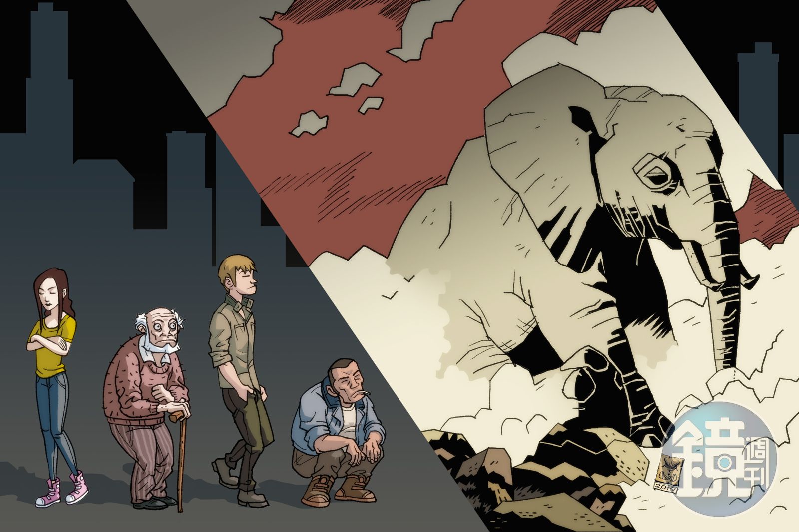 魯迅小說中的底層賤民阿Q飽受欺凌,痛苦時只能嘴上佔別人便宜來安慰自己。此時阿Q還魂轉世,在《大裂》書中醒了過來,左右張望,站起身手舞足蹈。《大裂》那看似天真孩子氣,寂寞的惡作劇背後,是生而為人,胸中一股荒涼澎湃的野性,垂天降世理當做一番大事;卻生於殘垣敗瓦之中,捲著垃圾盤旋而起,漫天揚灰,人見人逃,處處碰壁。蕭瑟淒迷,感覺自己一文不值。