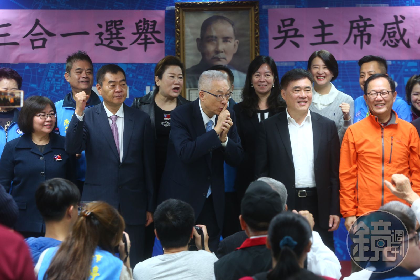 吳敦義致詞時重申,國民黨九合一選舉贏得15個縣市,保住嘉義市和新竹縣,「該贏的都贏了,不該贏的努力打贏」,議長選舉贏得19縣市,代表國民黨贏得民眾初步認同,希望縣市首長都能做得很好,2020就是國民黨重返執政良機。