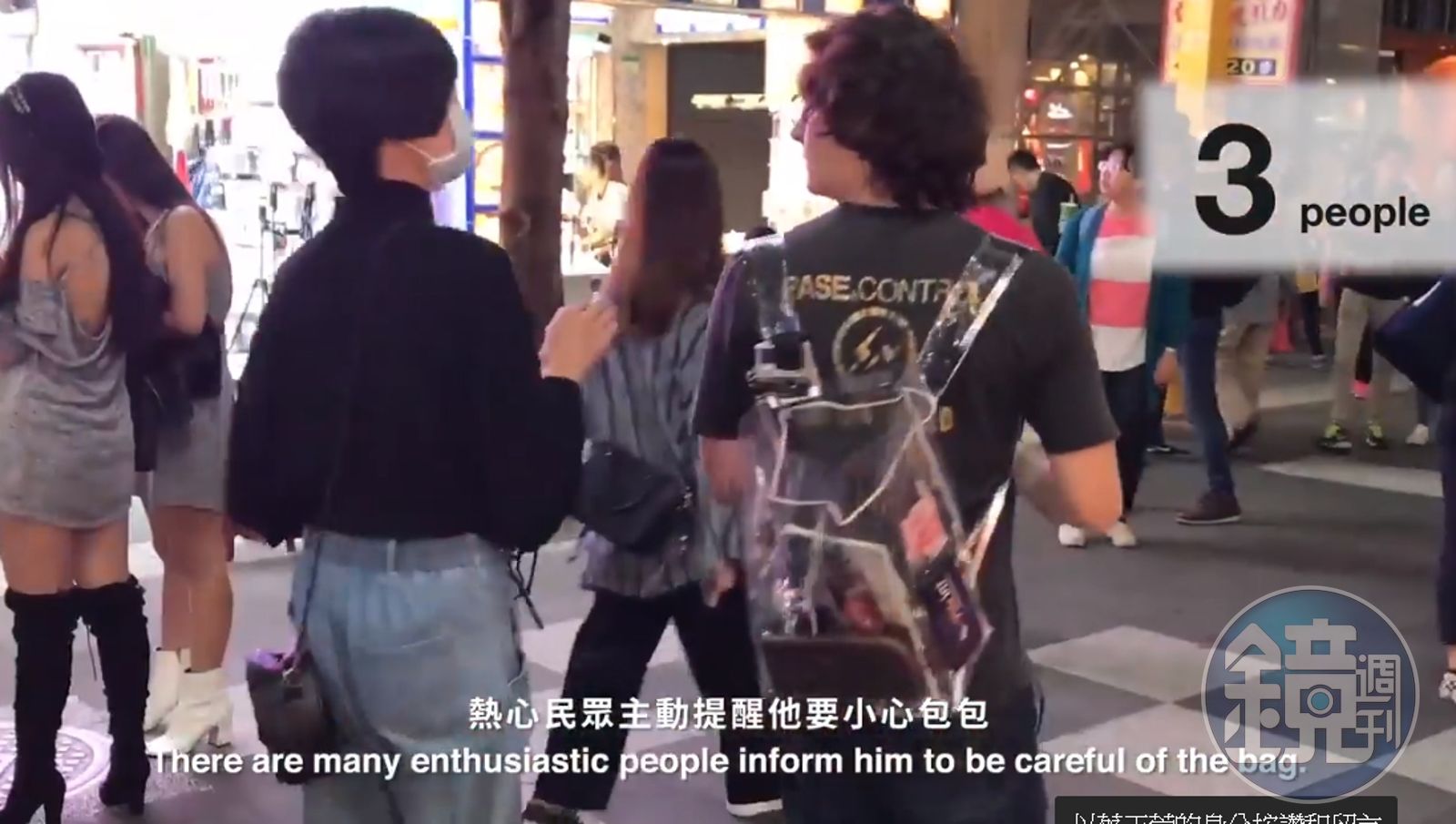 接著他們讓一名外國人實際背上該背包,單獨在西門町街頭逛街2小時,實驗結果發現,他不只東西完全沒有缺少,途中還遇到許多台灣人熱心提醒他,應該要把東西收好,最後影片還提醒,請旅客放心使用這個「台灣限定的包包」。