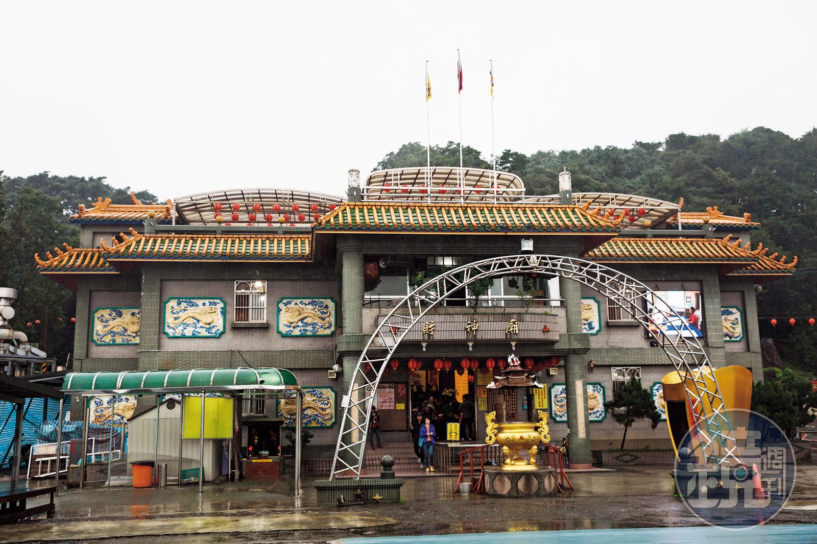 「北金山、南竹山,這間廟是北部最純的財神廟,我們每3個月就來拜一次。」從事房產業務的許先生與同事3人,即便下著大雨,也要趁空檔上山求財,「說也奇怪,每次拜完,總有機會上門,雖然最後未必能成交,但感覺運勢有變好。」許先生說,自己上山必求「開運三寶」—開運錢、財氣存摺及財寶袋,這也是金山財神廟最大的特色。