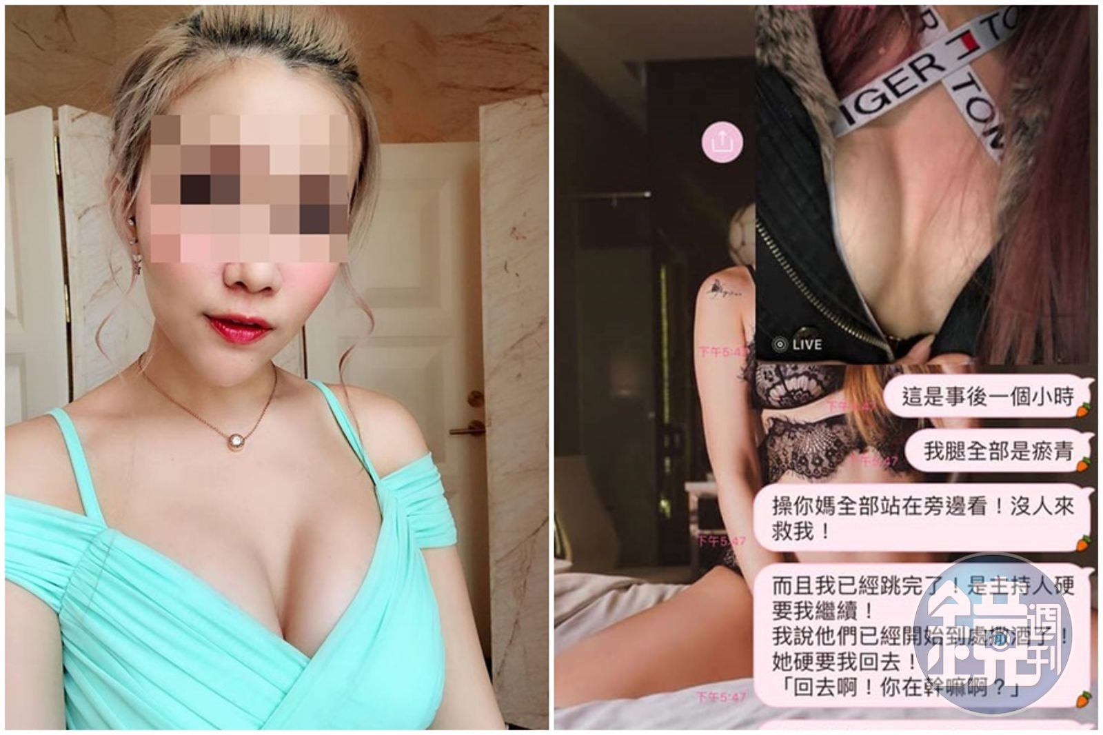 戴女控訴,她在20日晚間到三重參加尾牙場,15分鐘的表演後原要離開趕場,卻被現場主持人叫住,要求與台下客人互動,雖然戴女知道客人們已經喝茫,但仍硬著頭皮回到席間,表演工作因此演變成一場噩夢。