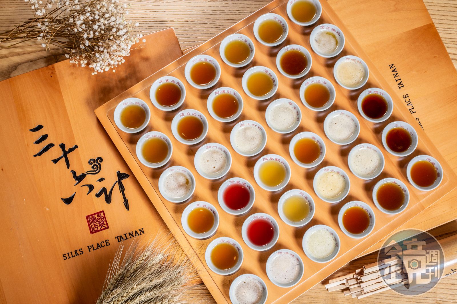 要參透36杯還是有法子,要從位置及風味著手,打開專屬酒單,經緯寫上基酒、中式茶、西式茶和各款香甜酒,按圖索驥、對應盤面位置,要挑中符合期待的就容易多了。