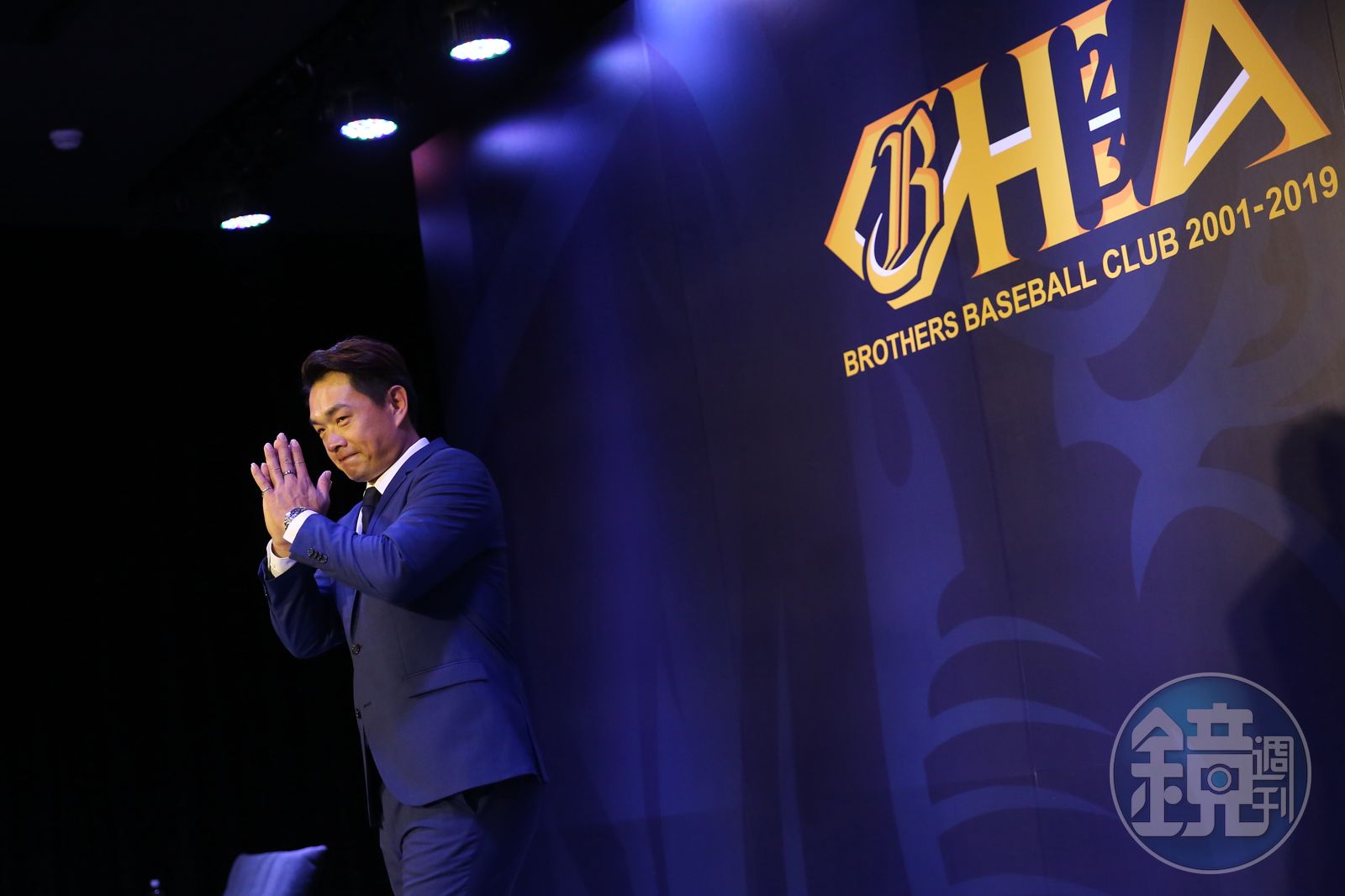 記者會這一天,他的瞇瞇笑眼消失了,從西裝口袋中拿出講稿,感性地讀著講稿,讀到「卸下球員身份」6個字時,落下了眼淚,紅著眼眶無法讀下去。