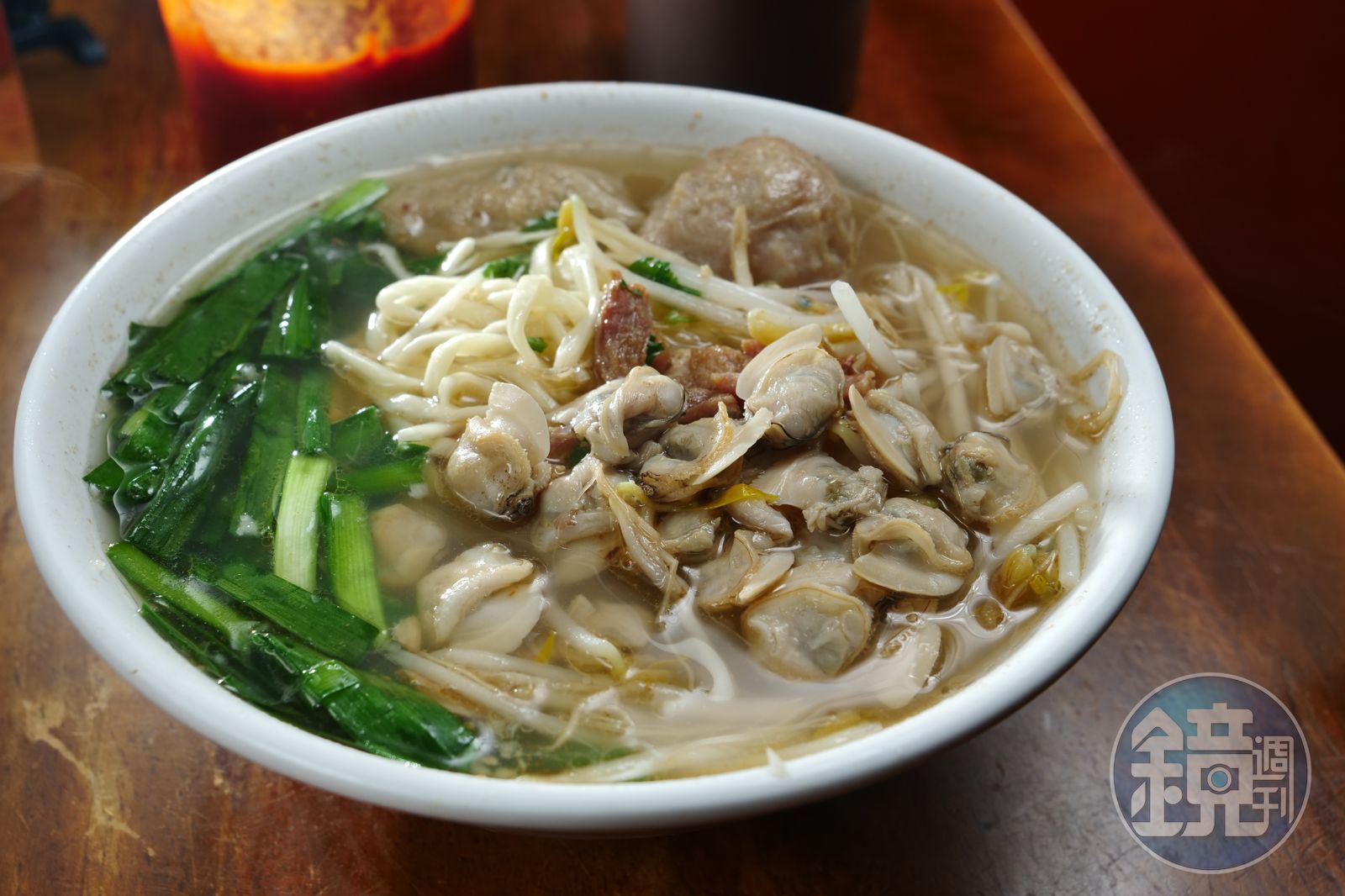 時至今日,蛤仔不再只是提味用的小咖,而是浮上檯面的主角,像是「阿添蛤仔麵」,就以60斤大骨配上80斤蛤仔熬高湯,再把蛤肉挑起,豪邁地鋪在「蛤仔麵」上,一口蛤仔一口湯,鮮美極了!老闆娘黃芝榕建議,一定要配「雞捲」,才是在地行家吃法。