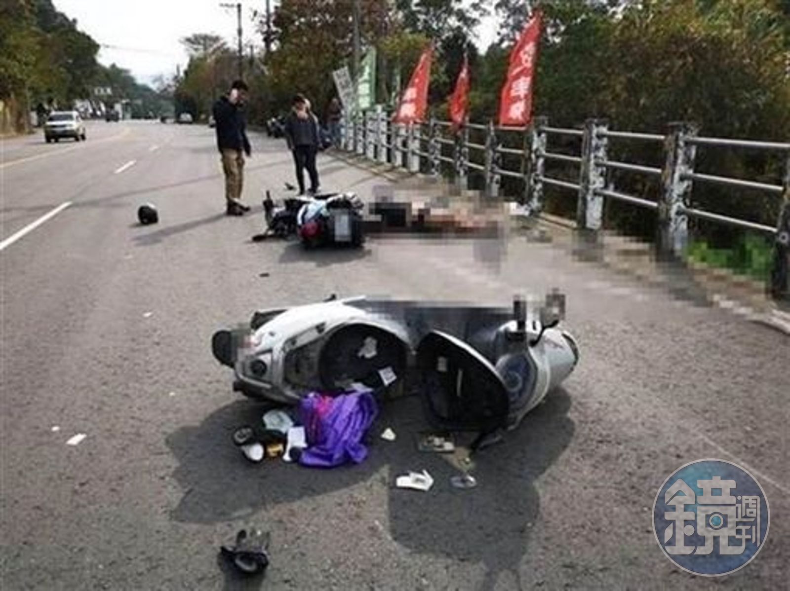 一名志願役上兵年初五收假回營,騎機車行經台中市大坑往新社方向時,疑似因為超車不慎,先擦撞一名女機車騎士,再失控撞擊路邊護欄,結果上兵頭部受到重擊,滿臉是血倒臥路邊,送醫後仍不治;遭擦撞的女騎士雙腳和胸部有擦傷、挫傷,幸無生命危險。