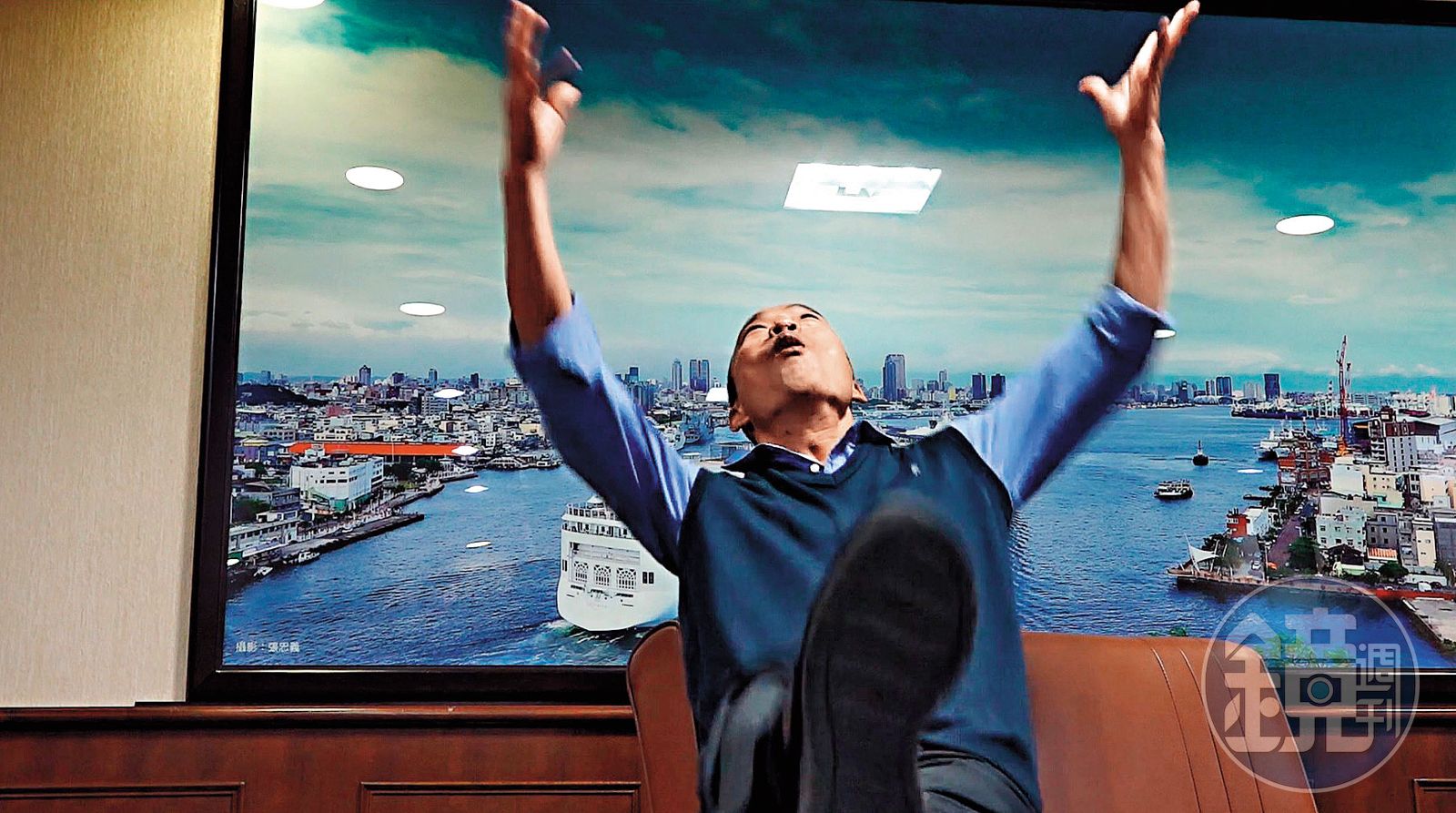 韓國瑜在接受本刊專訪時,重提國民黨四大天王打麻將神比喻,不禁情緒高漲到把腳高高抬起、身體仰天。發布時間:2019.02.13 05:58 臺北時間