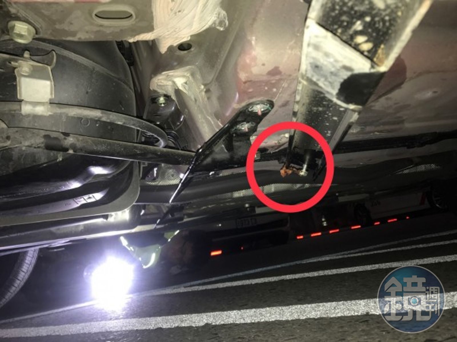 警方研判,謝男與廖女當時輾壓時車速約100公里至110公里,鑑識人員今天在這兩人車子底部都發現肉屑,其中一部車前方保險桿下方的銀色飾條有斷裂痕跡。