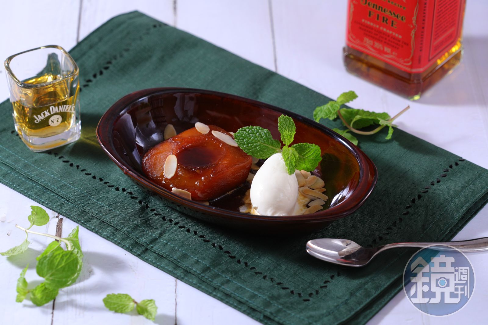 Elisa主廚完成後試吃,寫下這樣的筆記:「威士忌的肉桂風味和蘋果搭配得正好,酒味不會太嗆,肉桂又夠香,烤好的蘋果放冰箱,隔天酒香更濃更入味,直接吃或微波熱一下,冷吃熱食都適宜。」