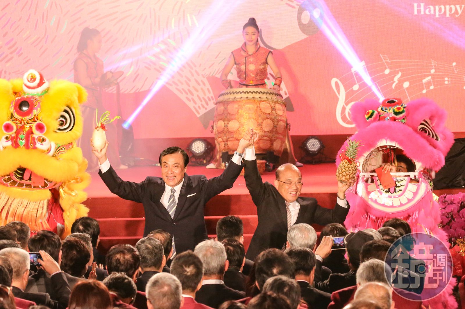 蘇貞昌致辭時說,他連唱2句都很困難,但行政團隊各有所長,副院長陳其邁以暖男自稱,已答應要代替他唱給大家聽。蘇還說,為了晚上的歡樂氣氛,今早開議立院同仁沒有特別為難,讓他順利上台,特別感謝蘇嘉全院長的安排。