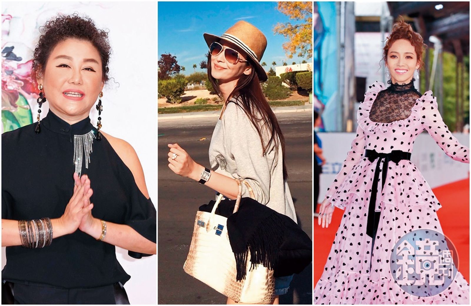身價數億元的藍心湄(左)是愛馬仕大戶,吳佩慈(中,翻攝自吳佩慈微博)也收藏愛馬仕多年,侯佩岑也曾在米蘭砸下近百萬元購入凱莉包。發布時間:2019.02.20 05:58 臺北時間