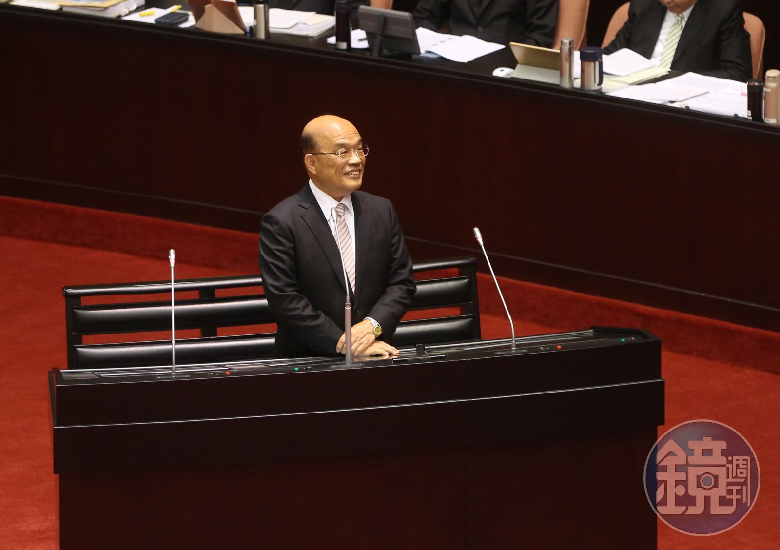 另外,針對本會期優先法案包括兩岸簽署和平協議要先公投的修法,蘇貞昌表示,修法「沒有針對誰,是針對國家重要事務」。媒體追問,是否衝著國民黨主席吳敦義而來?蘇解釋,沒有衝著誰,因為法律是全國適用、規範全民,「大家知道中國是對台灣不放棄武力的國家,我們要小心。」不過,陸委會主委陳明通今早受訪時明確點名,這次修法就是針對吳敦義拋出的兩岸和平協議。
